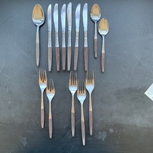 MCM Interpur INR2 Canoe Handle 11 Pc Japan Stainless Walnut Color Flatware Kitch