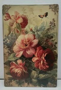 Tin Sign- Colorful Flowers And Butterfly In A Matte Finish