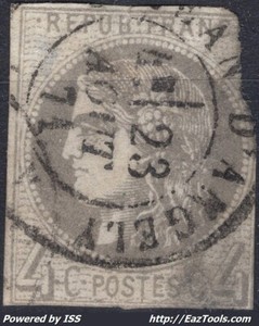 FRANCE EMISSION DE BORDEAUX 4c GRIS N° 41B AVEC CACHET A DATE A VOIR