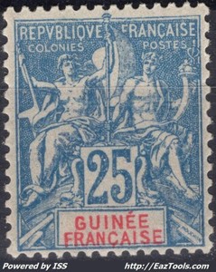 GUINÉE TYPE GROUPE 25c BLEU N° 16 NEUF * AVEC CHARNIERE
