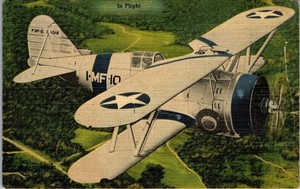 Vintage Airplane Aviation Postcard Military Biplane Airplane Linen 1943 WWII