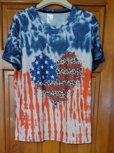 Patriotic Womens Shirt Top Size 8-10 Large Tie Dye Red White Blue Leopard