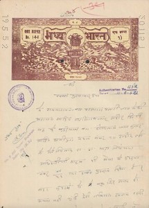 F-EX47220 INDIA REVENUE SEALLED PAPER FREEDOM STATE. 1 RUPEE.