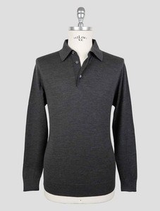 NEW KITON GRAY WOOL 14 MICRON SWEATER POLO EU 58 - US 48 - 3XL KMZ45