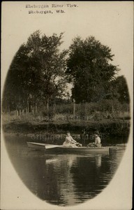 RPPC Sheboygan,WI River View, Woman Rowing Boat 1908 Wisconsin