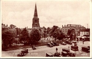 Bedford England UK St Paul's Church & Square Vintage Photo-Type Postcard