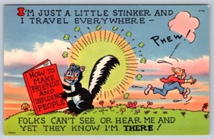 Bus And Skunks On Road AC Acid Test, 1955 Art Postcard Signed By Wally Falk