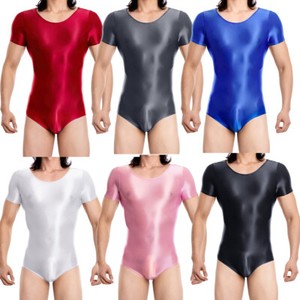 Men Shiny Wet Look PVC Leather Catsuit Short Sleeve Zipper Jumpsuit Gay Clubwear S$ 34.86 to S$ 39.85
