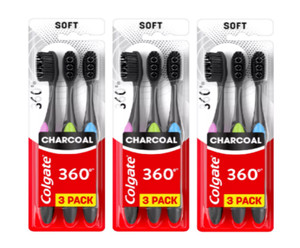 Colgate 360 Charcoal Toothbrush Soft 3ct 3 Pack