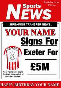 A5 Personalised Exeter Football Greeting Birthday Card any name, age value