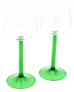 Rhine Wine Emerald Cristal D'Arques Durand Glasses Green Stem Barware 2 Set Pair