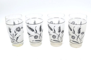 Vintage Wheat Wildflower Tall Drinking Glasses Libbey Frosted Lot 4