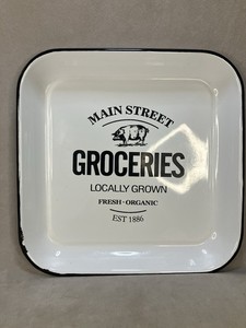 Vintage- style enamelware tray or Sign with "Main Street Groceries" branding.
