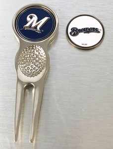 Baseball MLB Golf Divot Repair Tool Ballmark Silver Milwaukee Brewers