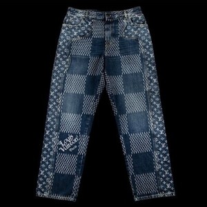 LOUIS VUITTON X NIGO GIANT DAMIER WAVES MONOGRAM DENIM PANTS INDIGO BLUE SZ 30