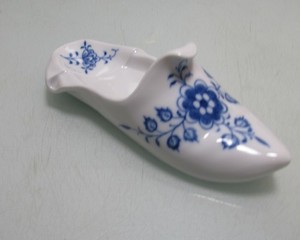 Schuh Pantoffel Glücksschuh Meißen blau weiß 3 Schleifstriche (VR)