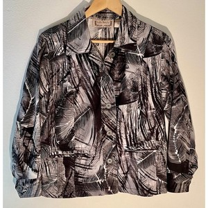 Life Style Black Gray Abstract Palm Leaf Print Button Front Jacket XL