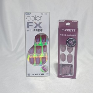 Kiss Impress No Glue Mani Press On Nails 91408 91998 - Short Purple Red