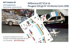 DECAL 1 43 PEUGEOT 205 GTI N° 45 RALLY WRC MONTE CARLO 1990 MONTECARLO