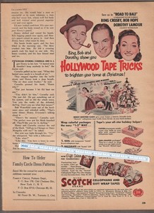1952 SCOTCH TAPE Magazin AD~CHRISTMAS~Road To Bali/Bob HOPE & Bing CROSBY~Lamour