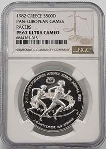 Greece Silver coin 500 dr 1982 Pan-European Games NGC MS69