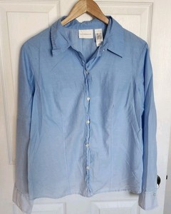 Liz Claiborne Womens Ombré Chambray Top Button Down Lightweight Size L LARGE