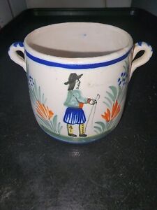 Vintage Folk Art Hand Painted Henriot Quimper 2-Handled Pot (Made in France)