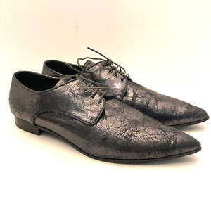 Miu Miu Oxford Lace Up Waxed Leather Metallic Crinkle Womens 9.5 EU 39.5