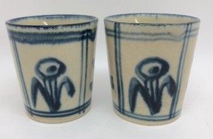 Antique Delft? Set of 2 Small Floral Porcelain Tea Cups or Shot Glasses (FR15)