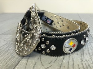 Pittsburgh Steelers Black NFL Leather Belt Rhinestone Bedazzled Bling Size Small