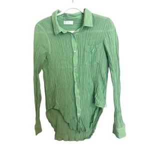 MONDAY Green Gauze Linen Long Sleeve Button Up Top Small