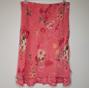 VTG Y2K Notations Sheer Floral Skirt Sz L Pink Mesh Overlay Fairy Coquette Boho
