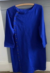 Phase Eight Jumper Dress Royal Blue 3/4 Sleeves Buttons Detail Size 12