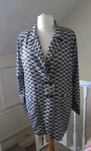 Ladies Black & White Geometric Print Lightweight Coat Oversized Size 14