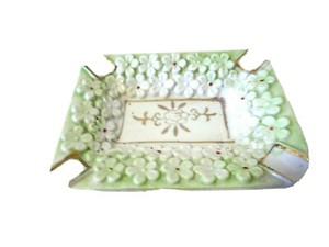 VINTAGE ASHTRAY-MADE IN JAPAN-MINT GREEN/WHITE-GOLD TRIM-2 3/4" X 3 5/8"-FLORAL