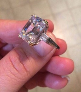 4CT Asscher Cut DEF Moissanite Three Stone Engagement Ring 14k White Gold Plated