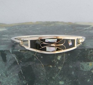 Alpaca Bracelet Mexican Silver Abalone 5-3/4" Retro Hinge Black Enamel Inlay G49