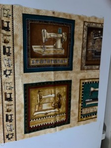 25-7-14 FABRIC PANEL-DAN MORRIS -"MRS. SEW & SEW"-ANTIQUE SEWING MACHINES 24X43