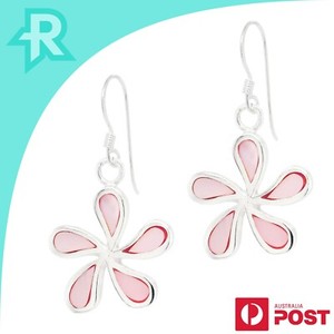Five Petal Flower Coloured Shell Sterling Silver 925 Hook Earrings