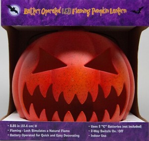Halloween 8.85 in Battery Operated LED Flaming Orange Pumpkin Lantern NIB