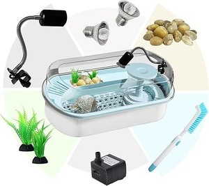 Baby Turtle Tank Kit Water Fountain Large Acrylic Habitat for Aquatic Turtles
