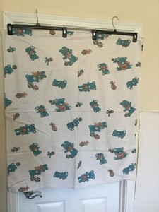 Vintage Baby Blanket Teddy Bears Balloons 36" x 40" White Blue Pink Crib New