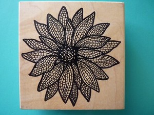 Flower Blossom w/Patterned Petals, Large MAGENTA Rubber Stamp