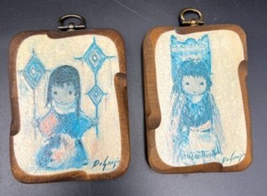Vintage Ted De Grazia Laminated Print on Wood Decapage Plaque Heavenly Blessings