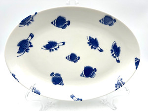 Crate and Barrel Fish Design Oval Platter Porcelain Blue and White 12.75" x 9"