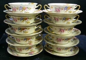 Antique Set of (10) Rosenthal Sunray Porcelain Cream Soup Bowl & Underplates Exc