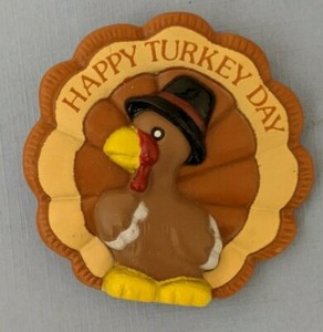 Vintage RUSS HAPPY TURKEY DAY! THANKSGIVING LAPEL PIN Badge Tom Turkey