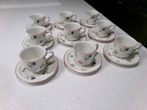 VILLEROY BOCH PETITE FLEUR LOT OF 9 DEMITASSE CUPS AND SAUCERS