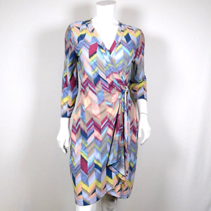BCBGMAXAZRIA BCBG MAXAZRIA Geometric Zigzag Wrap Dress With 3/4" Sleeves M (NN)