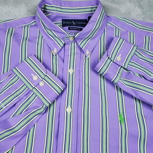 VTG Ralph Lauren Button Down Dress Shirt Mens XL 17 Purple Stripes Green Pony